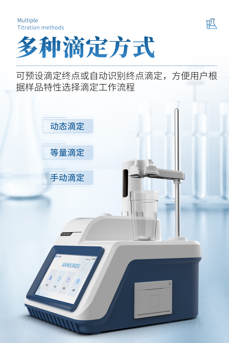 4、支持動(dòng)態(tài)滴定、等量滴定、手動(dòng)滴定的滴定方式,可預(yù)設(shè)滴定終點(diǎn)或自動(dòng)識(shí)別終點(diǎn)滴定,方便用戶(hù)根據(jù)樣品特性選擇**滴定工作流程;