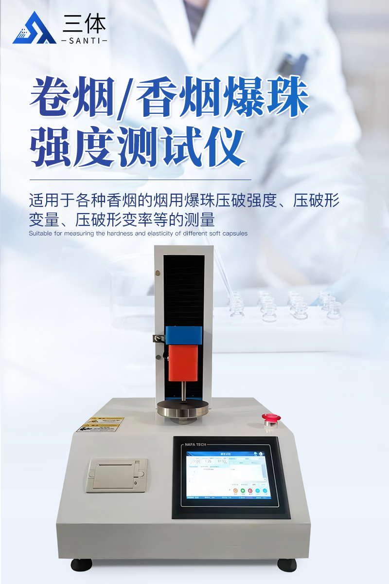 香煙爆珠強度測試儀適用于各種香煙的煙用爆珠壓破強度、壓破形變量、壓破形變率等的測量,為選擇產品的配方和工藝提供參考數據,該機也叫煙用爆珠壓破強度測試儀, 爆珠強度測量儀,香煙膠囊爆珠顆粒壓力形變檢測儀,香丸爆珠強度測試儀,香煙爆珠脆性膠囊強度測試儀等