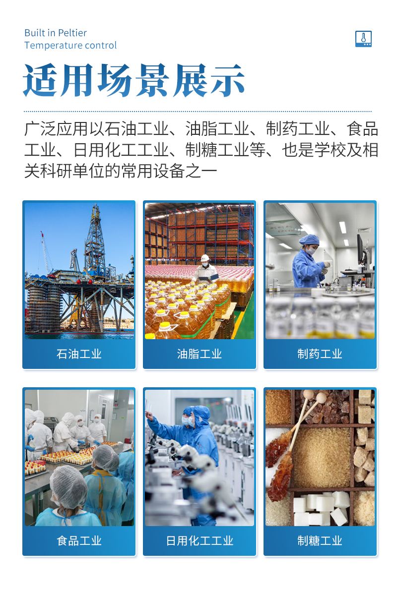 全自動折光儀擁有廣泛應用以石油工業、油脂工業、制藥工業、食品工業、日用化工工業、制糖工業等、也是學校及相關科研單位的常用設備之一。