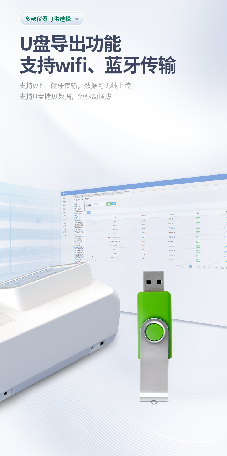 5、支持wifi、藍牙傳輸,數據可無線上傳;支持U盤拷貝數據,免驅動插拔。