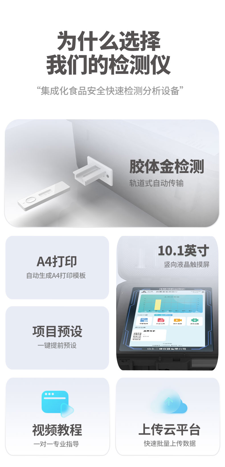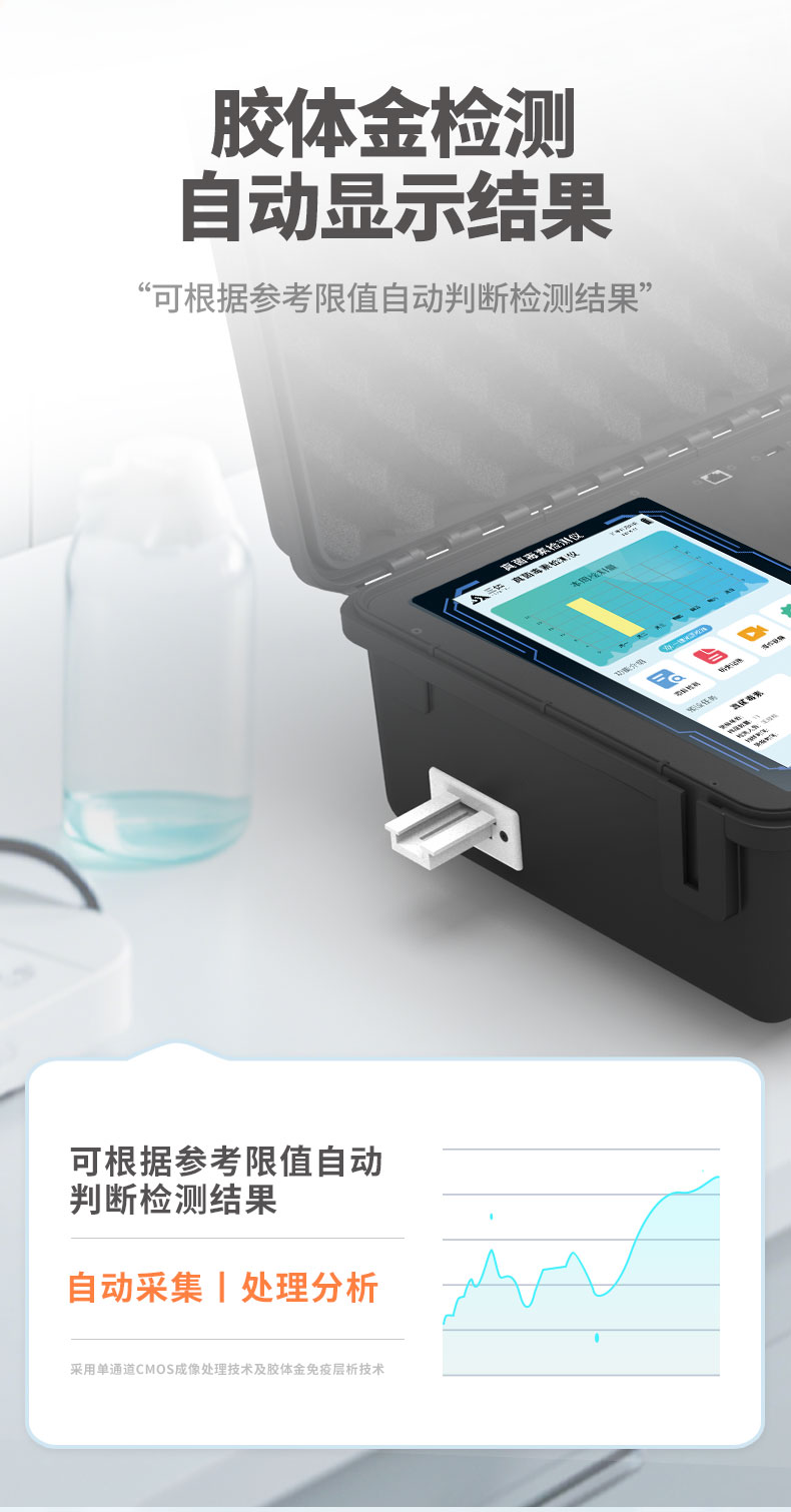 2、儀器功能包括:膠體金檢測模塊、數(shù)字化管理模塊、無線通訊模塊等,可以滿足同一軟件下實(shí)現(xiàn)所有檢測項(xiàng)目的檢測,并在同一窗口展示檢測結(jié)果。